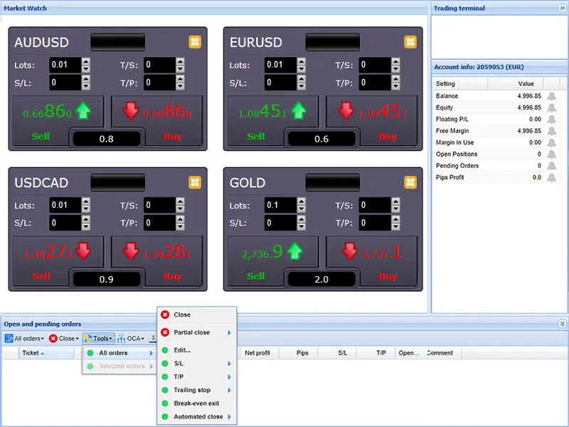 Possibilità di chiudere velocemente tutte le posizioni. E' possibile anche chiudere solo le posizioni in profitto o solamente le posizioni in perdita